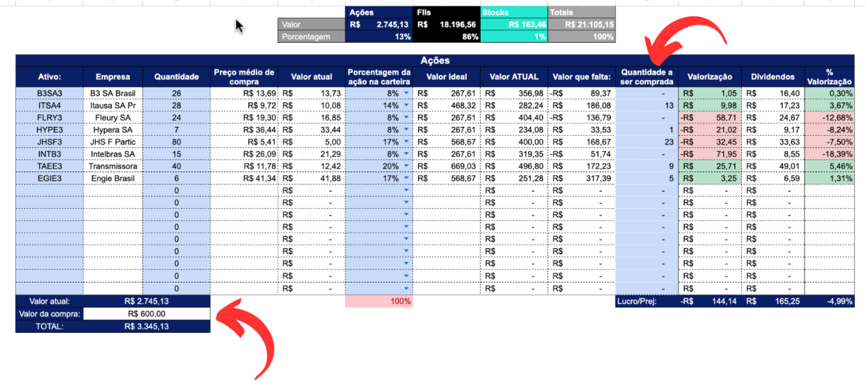 Testemunhe a transformação do seu dinheiro! A planilha atualiza automaticamente o valor dos ativos a cada 3 minutos, proporcionando uma visão em tempo real da valorização/desvalorização dos seus investimentos na bolsa de valores.